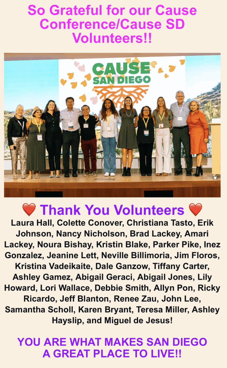 Want to help us accelerate social impact through our Cause Conference, Social Impact Awards, Scholarships and outreach work? If so, reach out to Staci Reidinger at staci@causesandiego.org to inquire about our Cause Conference partnerships, sponsorships, exhibitor spaces and more!